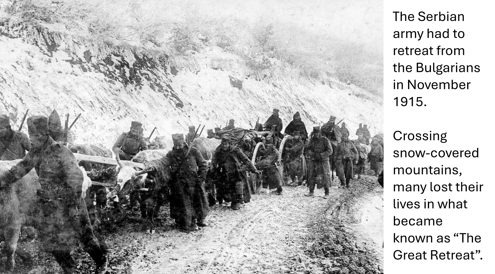 The Serbian army was forced to retreat through harsh mountain terrain during the winter, suffering heavy losses.